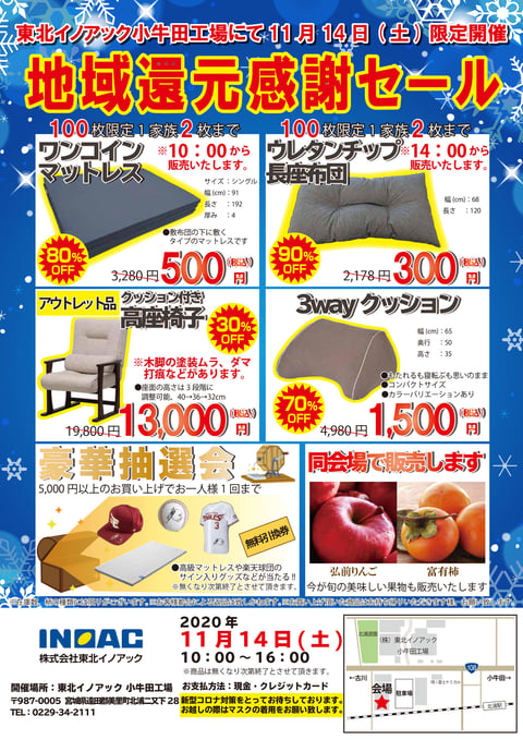 年に数回各地域で開催している感謝セールですが、なんと初の地元工場での開催です。